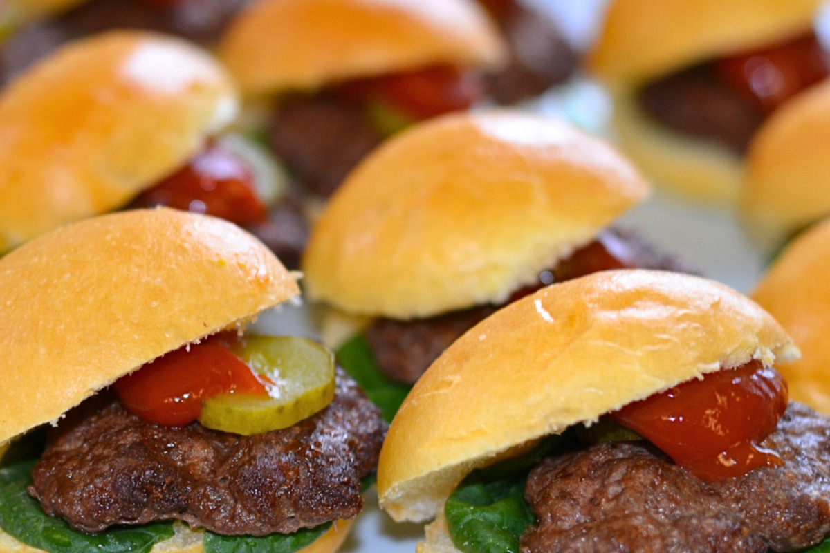 Mini Beef Hamburgers • tomato chutney • spicy mustard