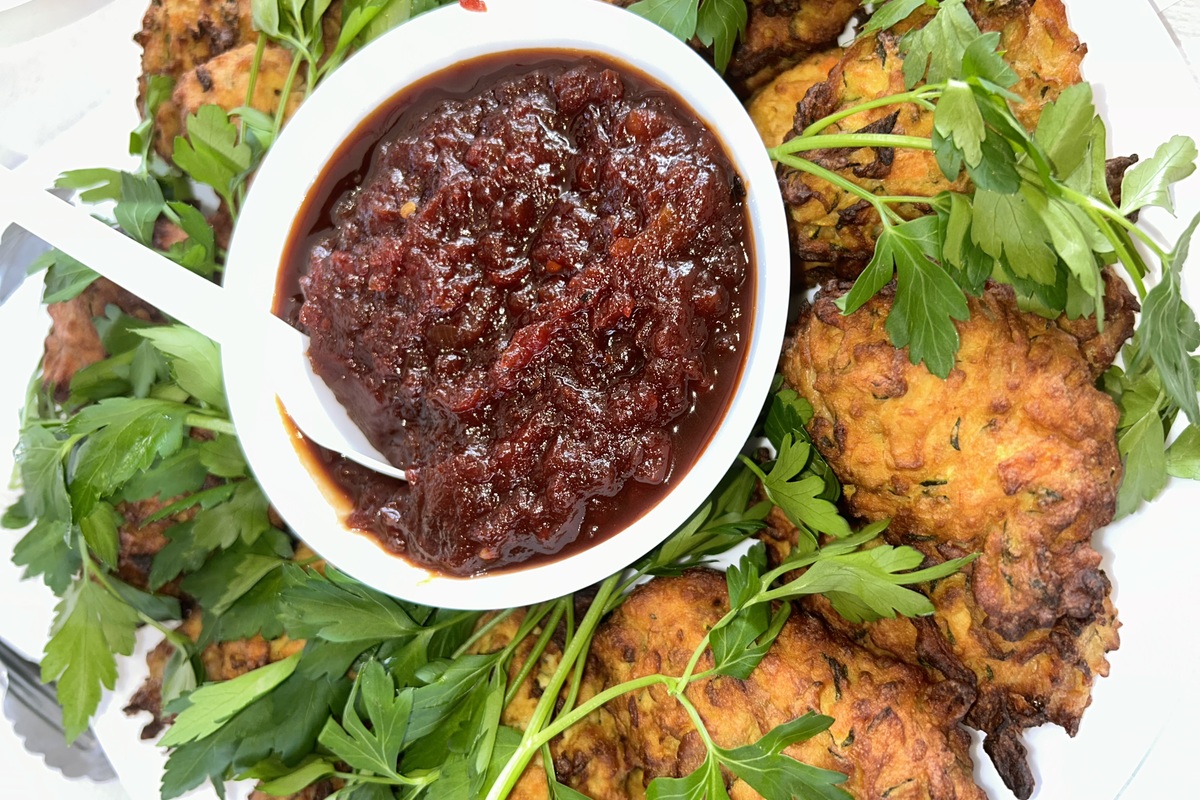 Mini Courgette Fritters • spiced roast tomato sauce